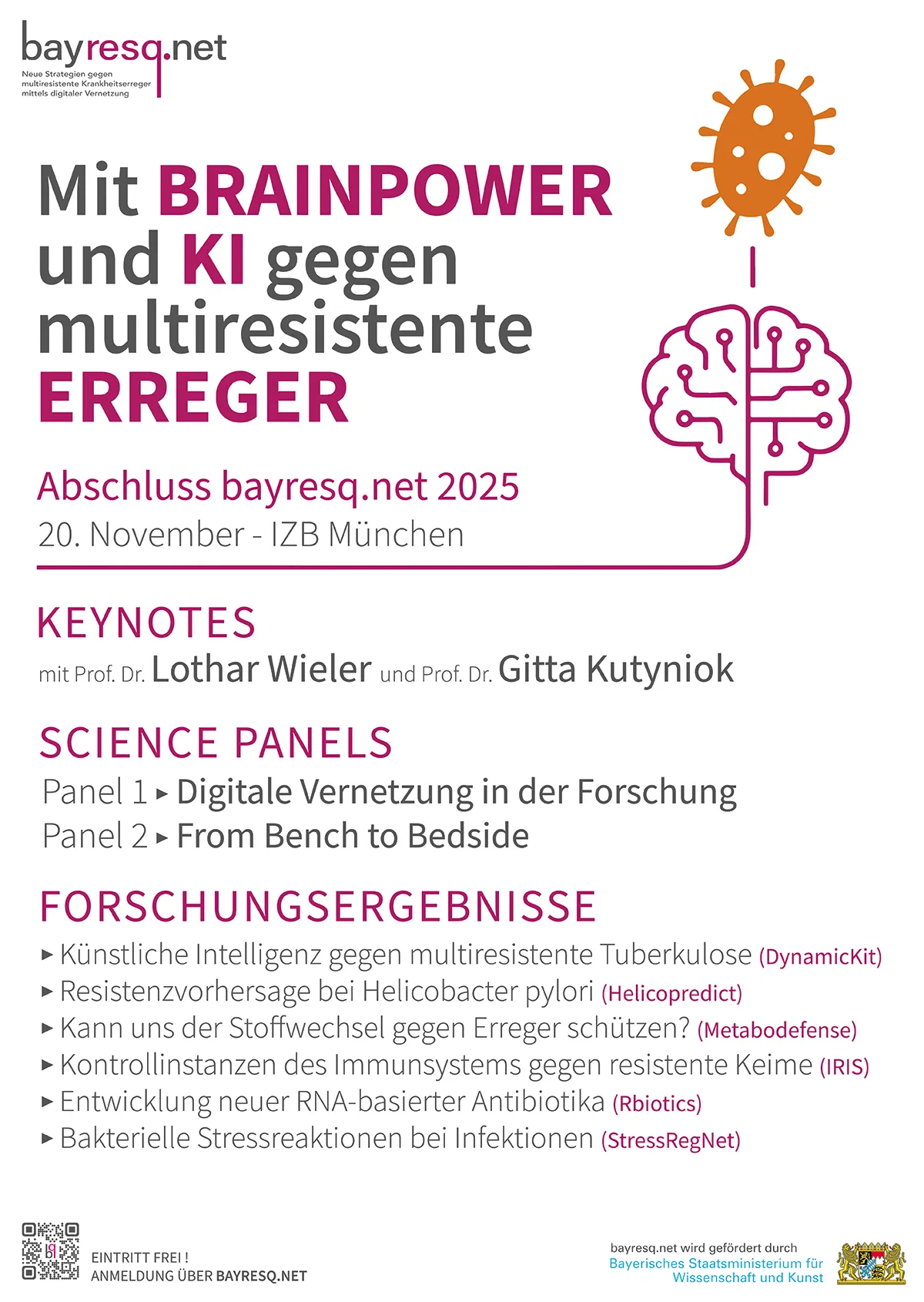 You can look forward to outstanding science panels and keynotes by Prof. Dr. Lothar Wieler and Prof. Dr. Gitta Kutyniok, as well as exciting research results from five years of groundbreaking AMR research based on new technologies.